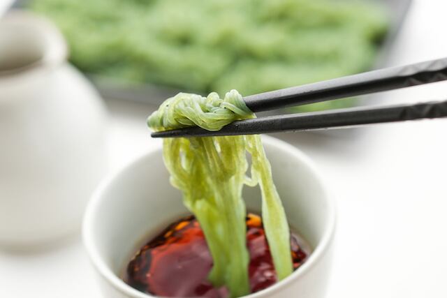 さっぱり、あっさり、お召し上がりいただける「まるな」特製のわかめ配合細づくりこんにゃく麺。つけダレは、だいだい、甘夏ベースの当店オリジナルの柑橘系ダレで。ヘルシーで罪悪感のない麺タイプこんにゃく。